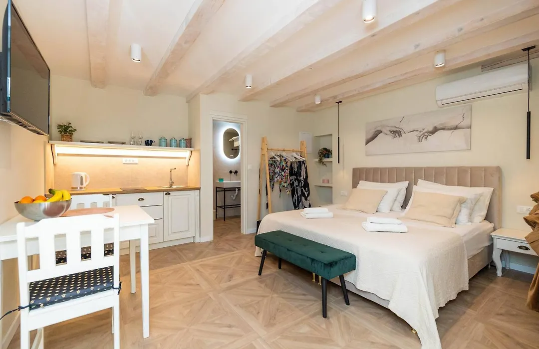 Une cuisine complète est équipée d'une bouilloire électrique et d'une table de cuisson pour que vous puissiez cuisiner tout seul. Vous pourrez dîner dans le Poco Loco et le Gourmet Bar Ginger, qui se trouvent à 50 mètres. Il est niché à 20 km de l'aéroport Aeroport de Dubrovnik.